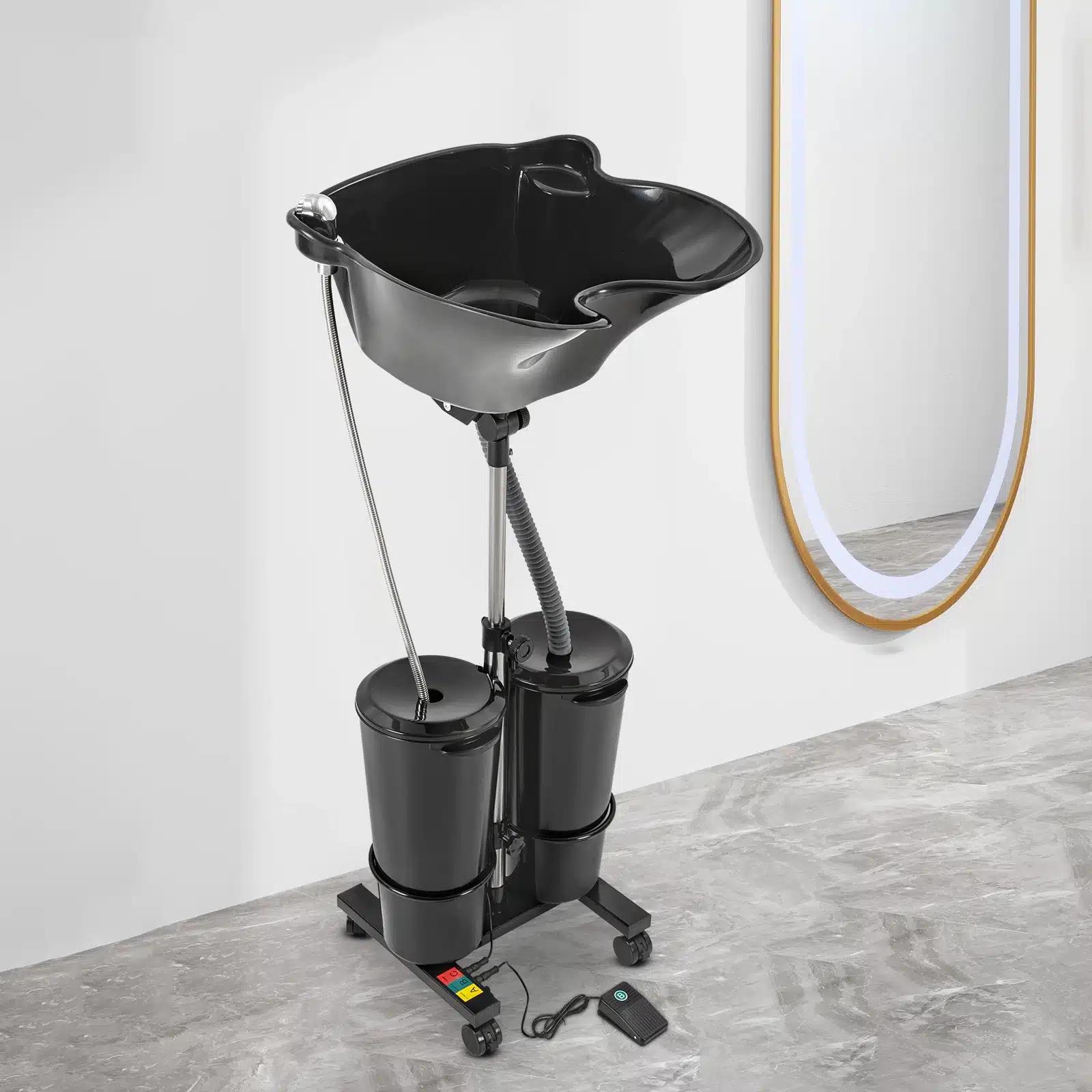 Équipé d’un réservoir de shampoing amovible, il facilite le nettoyage et le vidage de l’eau après chaque utilisation. Ce système ingénieux évite les éclaboussures et garde l’espace de travail propre. Le bac peut être utilisé n’importe où, sans raccordement fixe, ce qui le rend particulièrement pratique pour les coiffeurs à domicile ou les professionnels mobiles.