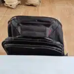 Organisation pratique avec plusieurs poches intérieures et extérieures pour ranger documents, chargeurs et clés. L’ouverture zippée donne un accès rapide au contenu, tandis que les coussins de protection placés en bas limitent l’usure au contact du sol.
